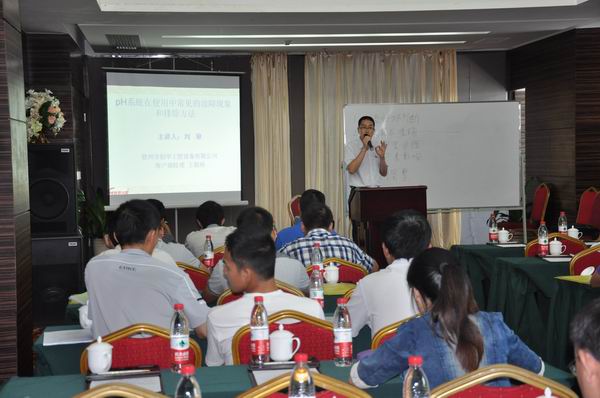 這次培訓(xùn)主要以創(chuàng)華工控pH自控系統(tǒng)系列產(chǎn)品為主,結(jié)合生產(chǎn)工藝,從理論到實(shí)際、系統(tǒng)結(jié)構(gòu)圖到實(shí)物,圍繞如何更好操作和維護(hù)設(shè)備展開(kāi)講解,主要內(nèi)容有《玻璃電極的使用和維護(hù)》、《pH自控系統(tǒng)電路原理分析》、《pH自控系統(tǒng)故障分析和排除》等。培訓(xùn)還邀請(qǐng)了著名制糖專家—廣西大學(xué)食品工程學(xué)院周少基教授及糖廠pH自控系統(tǒng)第一人—華南理大學(xué)黃揚(yáng)明博士就《蔗汁澄清與控制》和《可靠性工程與產(chǎn)品研制》等方面內(nèi)容進(jìn)行了講解。